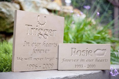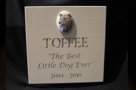 30cm x 15 cm 2cm thick Our sandstone memorials radiate the warmth and charm that only natural sandstone can provide. A sandstone Pet Memorial plaque make a really special memorial and look beautiful wherever they are displayed. Maximum of 21 Characters including spaces for Inscription and Date Combined